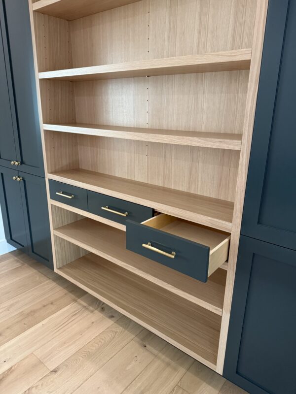 PETRA Project Overview COMING SOON Details Satin and Semi-Gloss Paint Semi-Gloss Oak Shelving Soft Close Doors and Drawers High Quality Hardware Solid Oak Desk Tops Built in 2026 Start Your Project